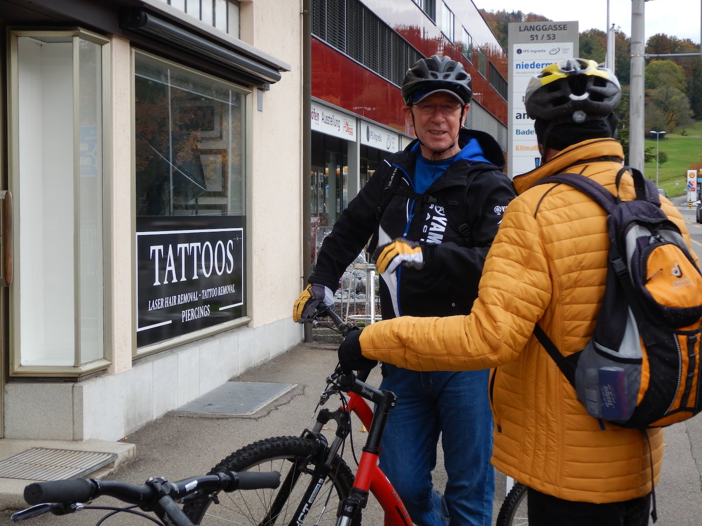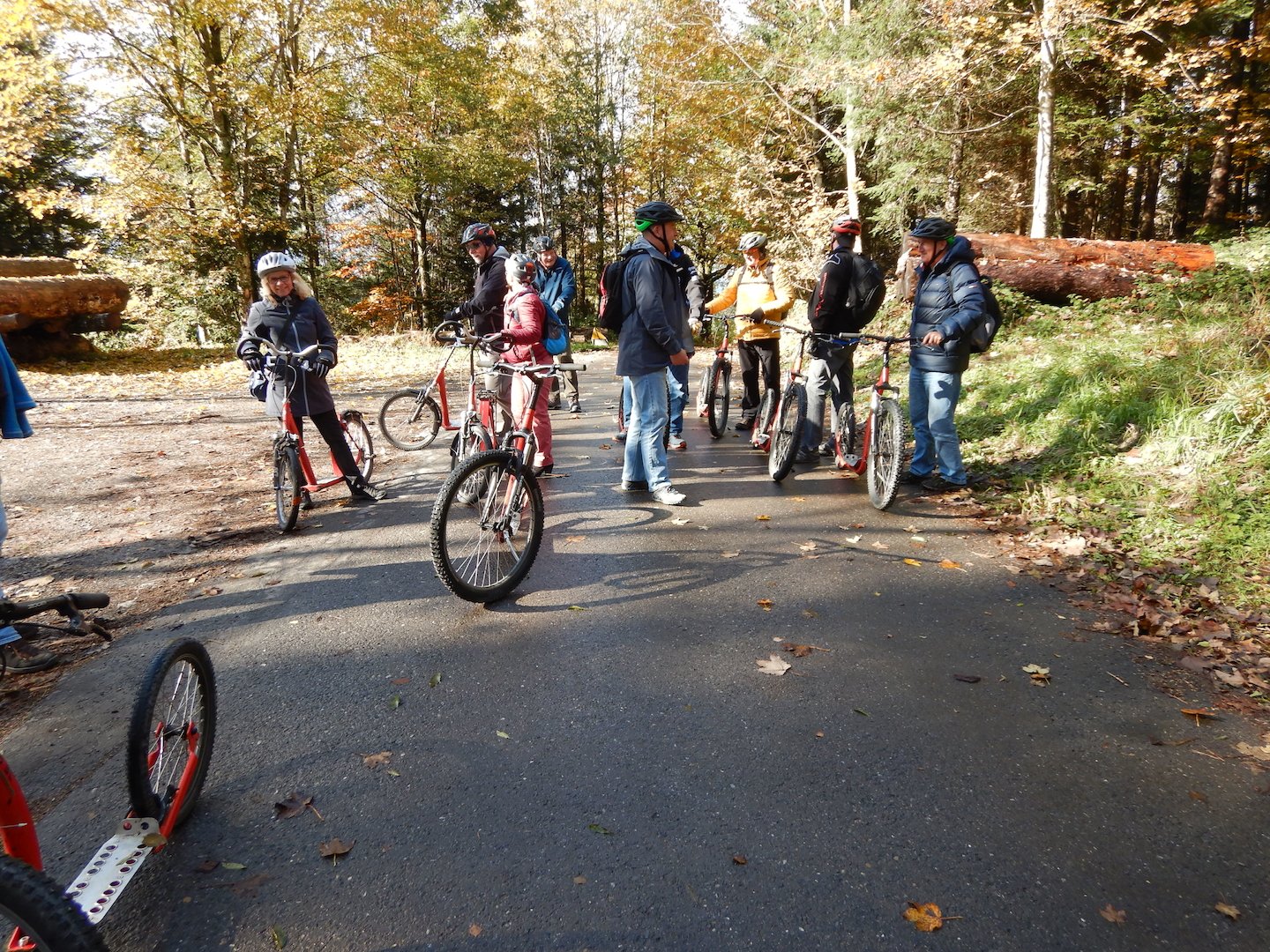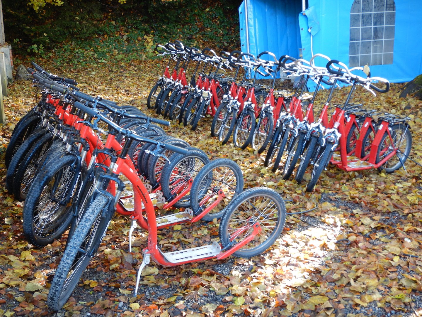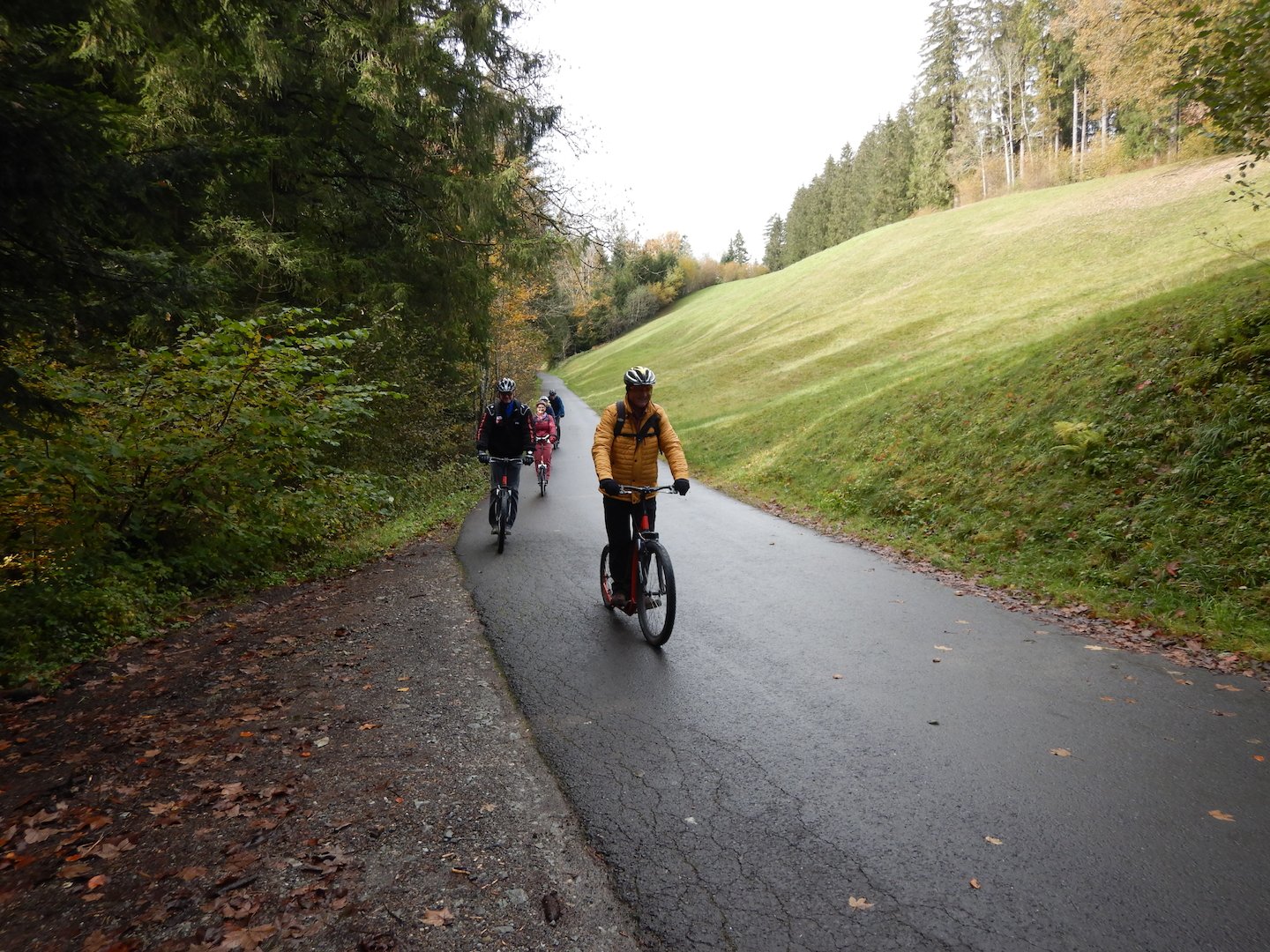 Das Trottifahren begann unerwartet mit einem kleinen Fussmarsch, welcher manchen etwas ins Schwitzen brachte. Dafür wurde die Abfahrt umso mehr genossen. Aber oweh, da es bis am Vormittag noch geregnet hatte, waren die Strassen und Wege in den Waldpartien noch nass und so hatten die meisten von uns nach kurzer Zeit einen braunen Streifen auf der Hose.