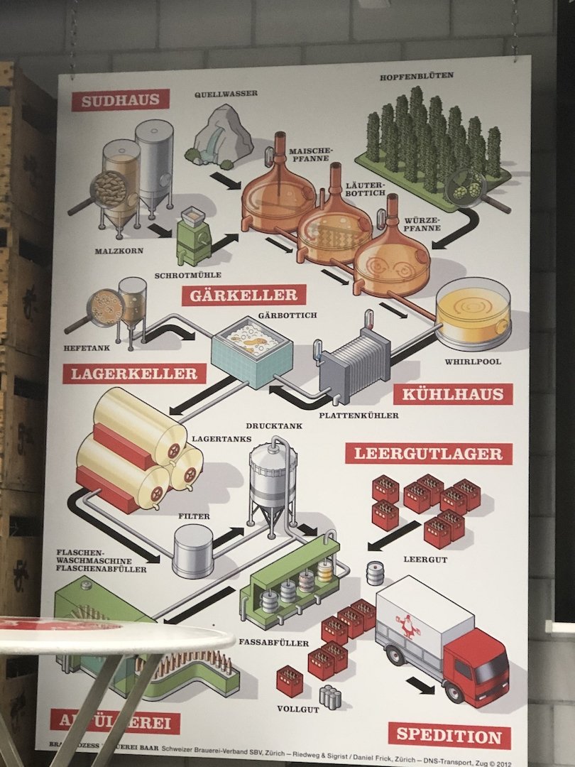 Alles halb so wild, trocknete dieser doch während der Führung durch die Braui Baar gut ab konnte leicht abgeklopft werden. Wir wurden in die Kunst des Bierbrauens eingeführt und erfuhren die Geschichte der Braui. Bei der anschliessenden Degustation waren die Fussgänger und ÖV-Benutzer sicher im Vorteil, galt es doch 7 verschiedene Biere zu kosten.