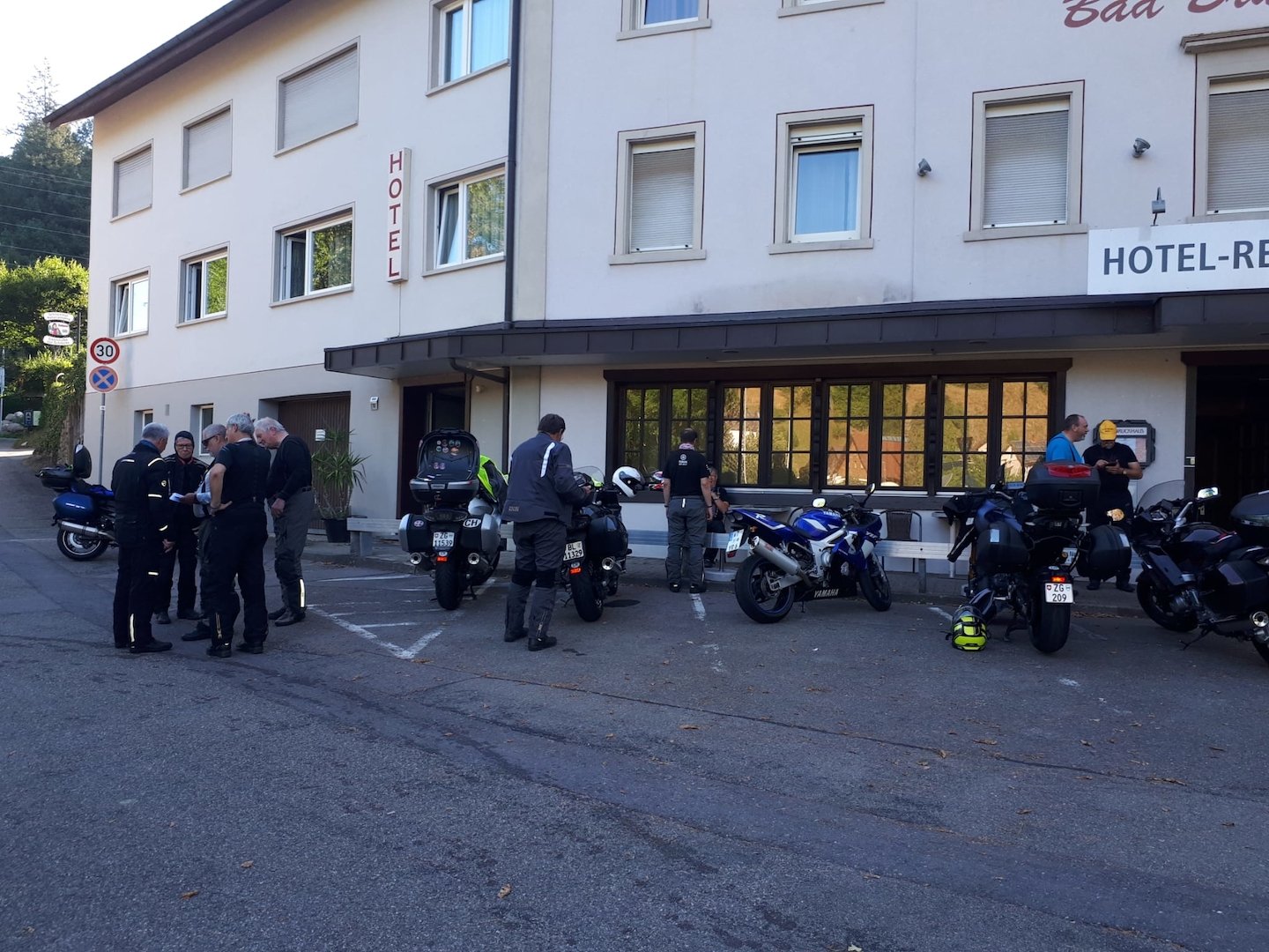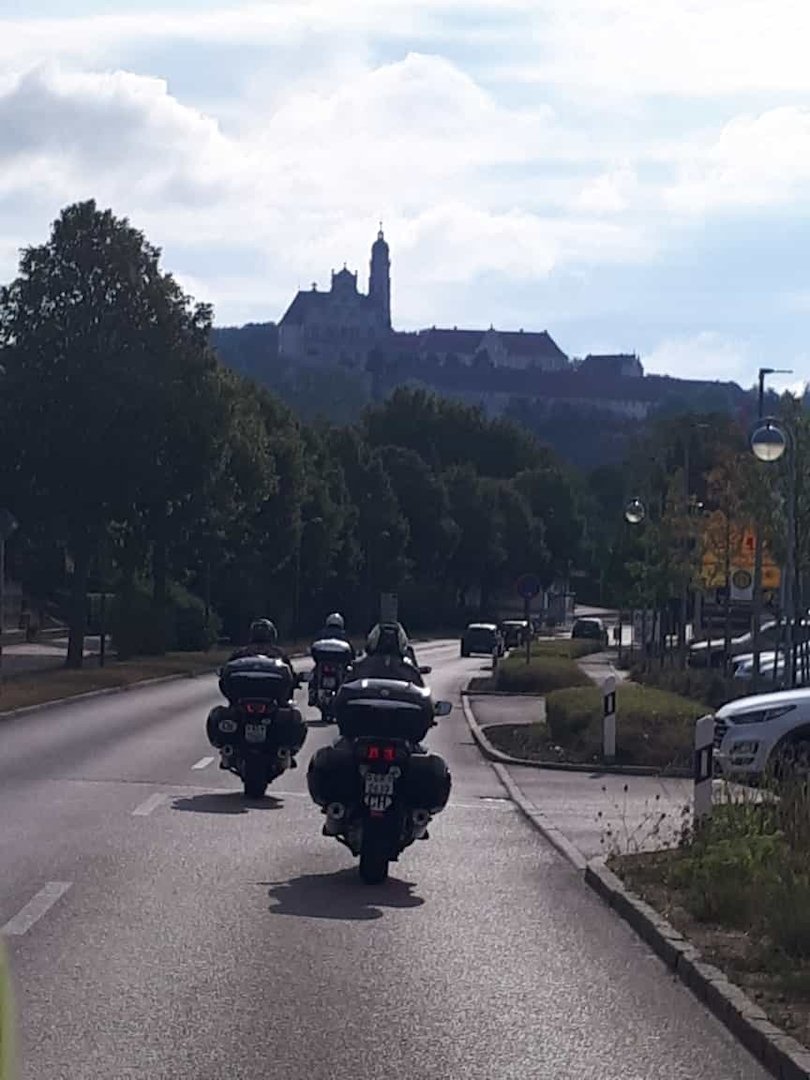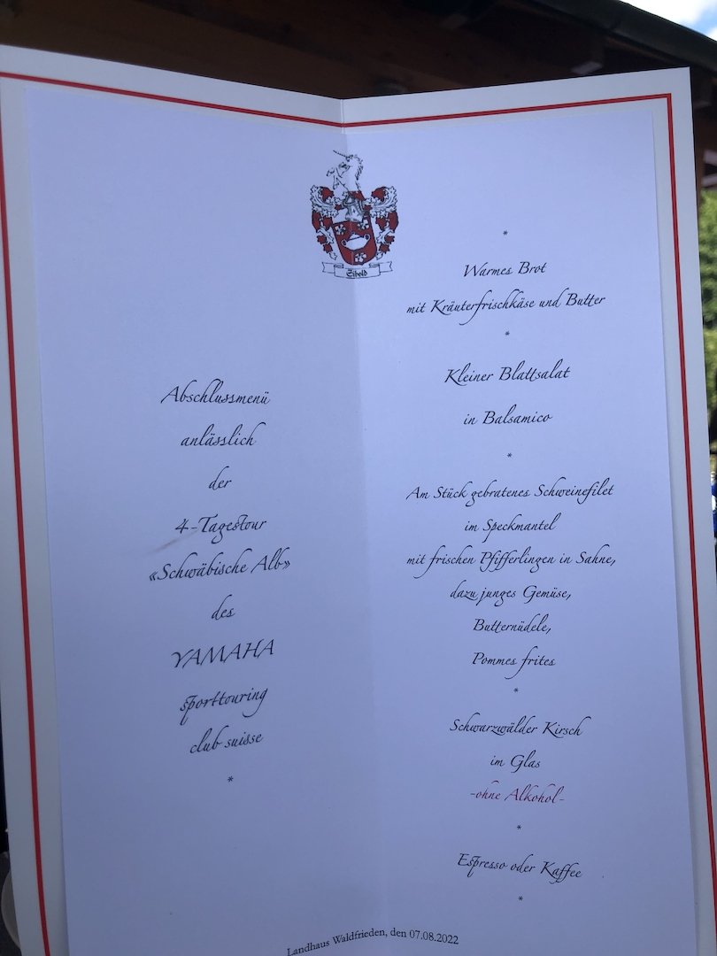 Nachdem drei Unentwegte im Herbst 2021 die letztjährigen Routen optimiert haben, hat der teutonische Umleitungsteufel erneut massiv zugeschlagen. Keine der vier Tagestouren konnte ohne Umleitung der Umleitung der Umleitung (Wo sind wir denn auch nur?) gefahren werden. Die gute Nachricht: Alle haben den Weg ins Schlosshotel Hellenstein in Heidenheim jeweils gefunden und die 1200 Kilometer mit vielen langen und engen Kurven auf Strassen jeder Qualität (auch Schotter, war aber so nicht vorgesehen) ohne jeden Zwischenfall in vollen Zügen genossen. Unser Gastgeber hat sich viel Mühe gegeben und uns vorbildlich betreut. Einen grossen Dank an die Hotelcrew!