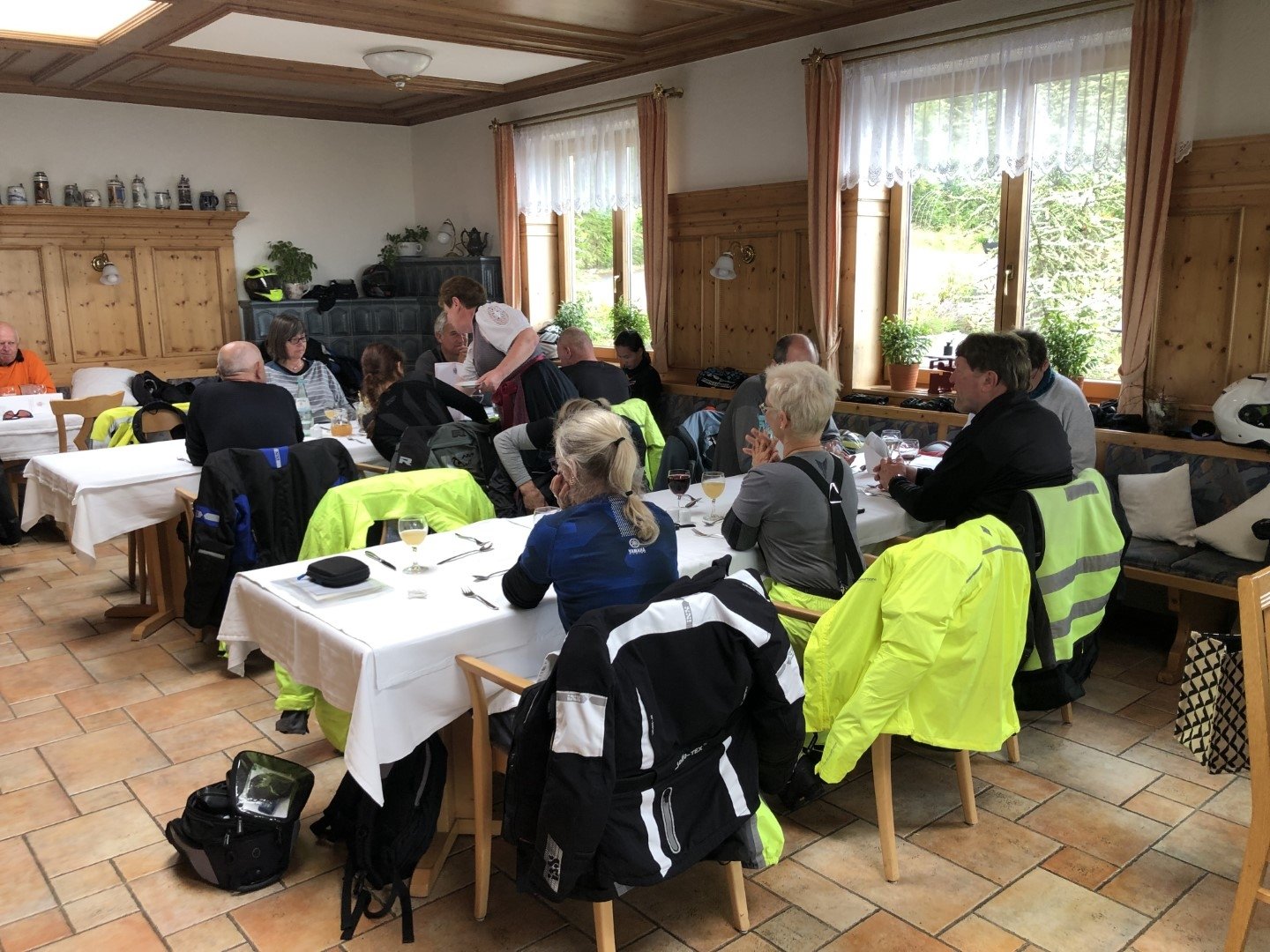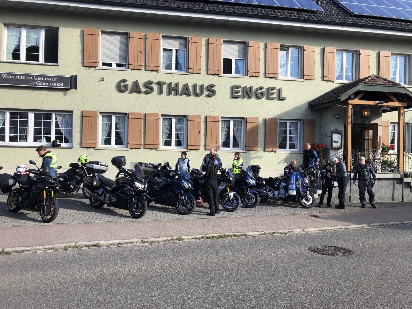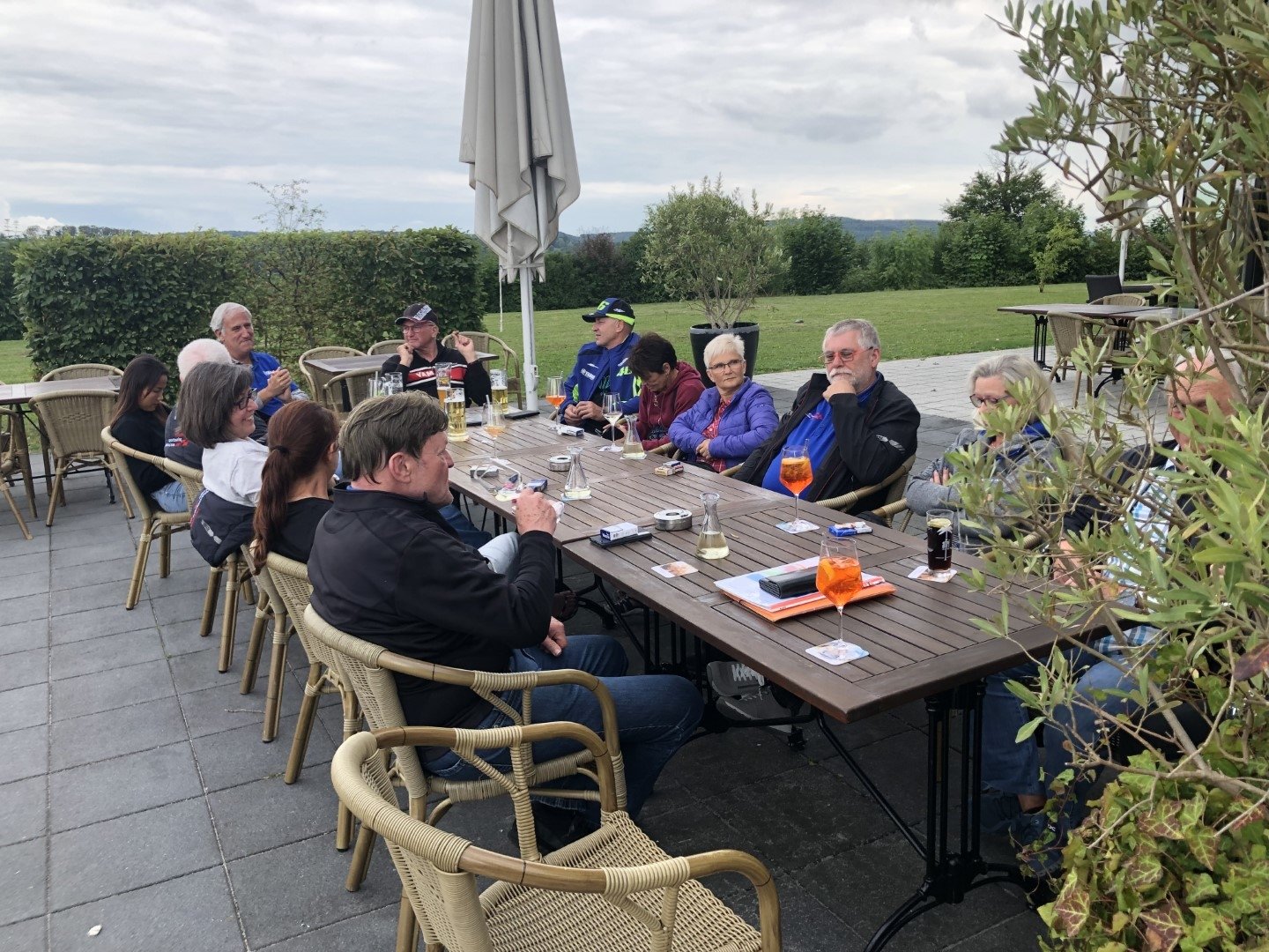 Trotz schlechter Wetterprognose wagten 23 Clubmitglieder auf 20 Motorrädern diese viertägige Tour und wurden belohnt. Das Wetter war bis auf einen kleinen Regenschauer in den ersten drei Tagen zwar bewölkt, aber sonst trocken. Nur auf der Heimfahrt am Sonntag zeigte uns Petrus, zu was er fähig wäre, wenn er uns schlecht gesonnen ist. Die Strecke war sehr abwechslungsreich und der Verkehr zum Glück sehr dürftig, was entweder an der Ferienzeit oder am vermeintlich schlechten Wetter lag, jedenfalls mussten wir nicht allzu viel überholen. Im Schlosshotel Hellenstein wurden wir wie immer freundlich empfangen und das Essen schmeckte allseits bestens.Alles in allem wieder ein sehr gelungener Anlass, die meisten würden wieder kommen.