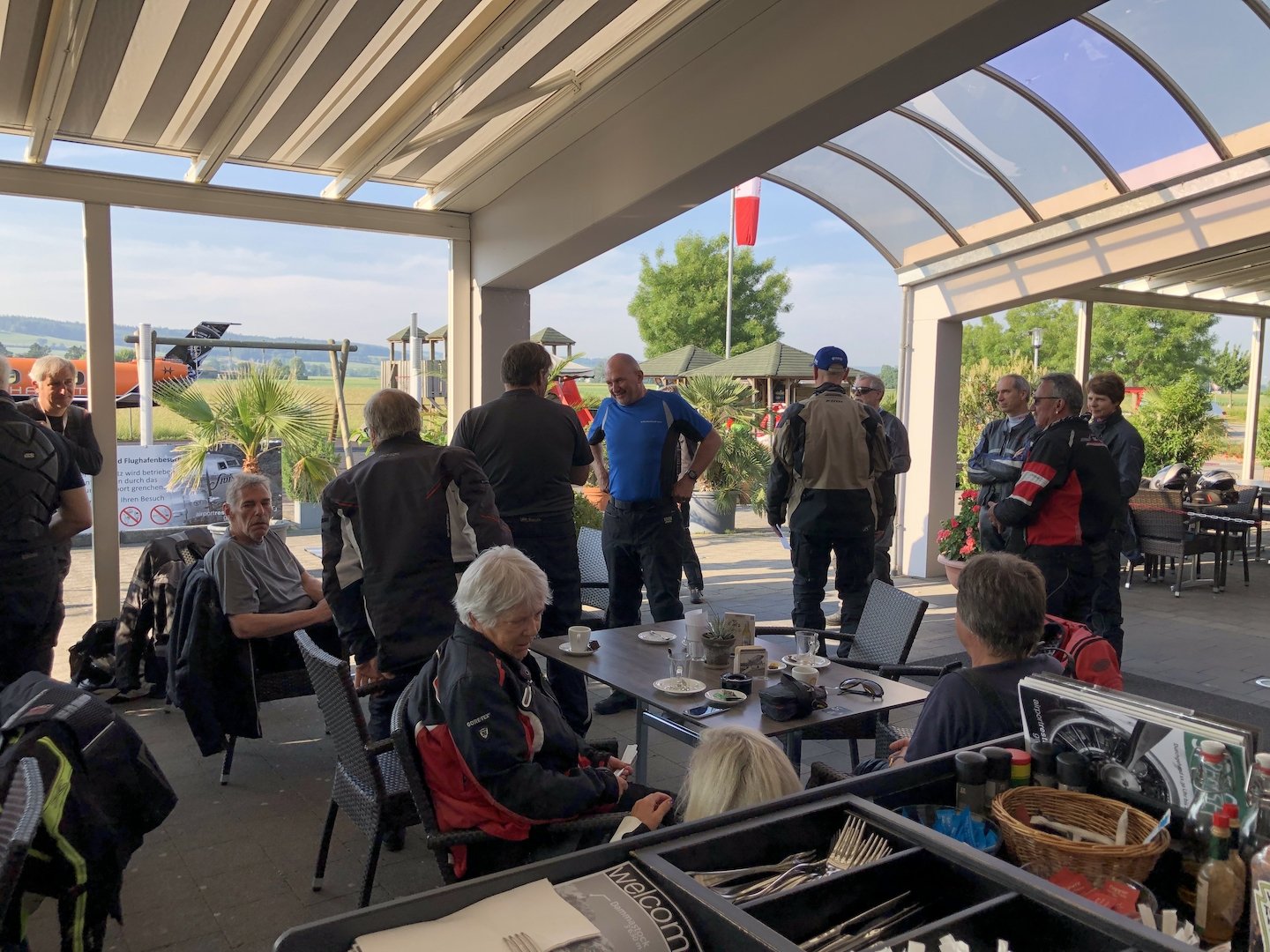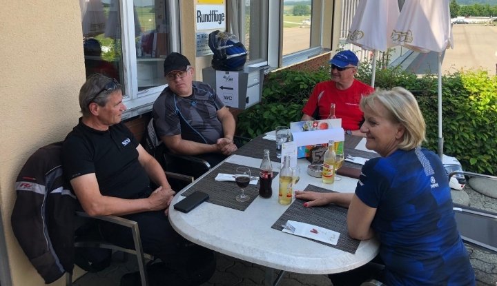 19 der 33 Teilnehmer trafen sich bereits am Vorabend am Startort Flughafen Grenchen und verbrachten bei Speis und Trank einen gemütlichen Abend. Der Rest schloss sich ihnen am Samstagmorgen an.