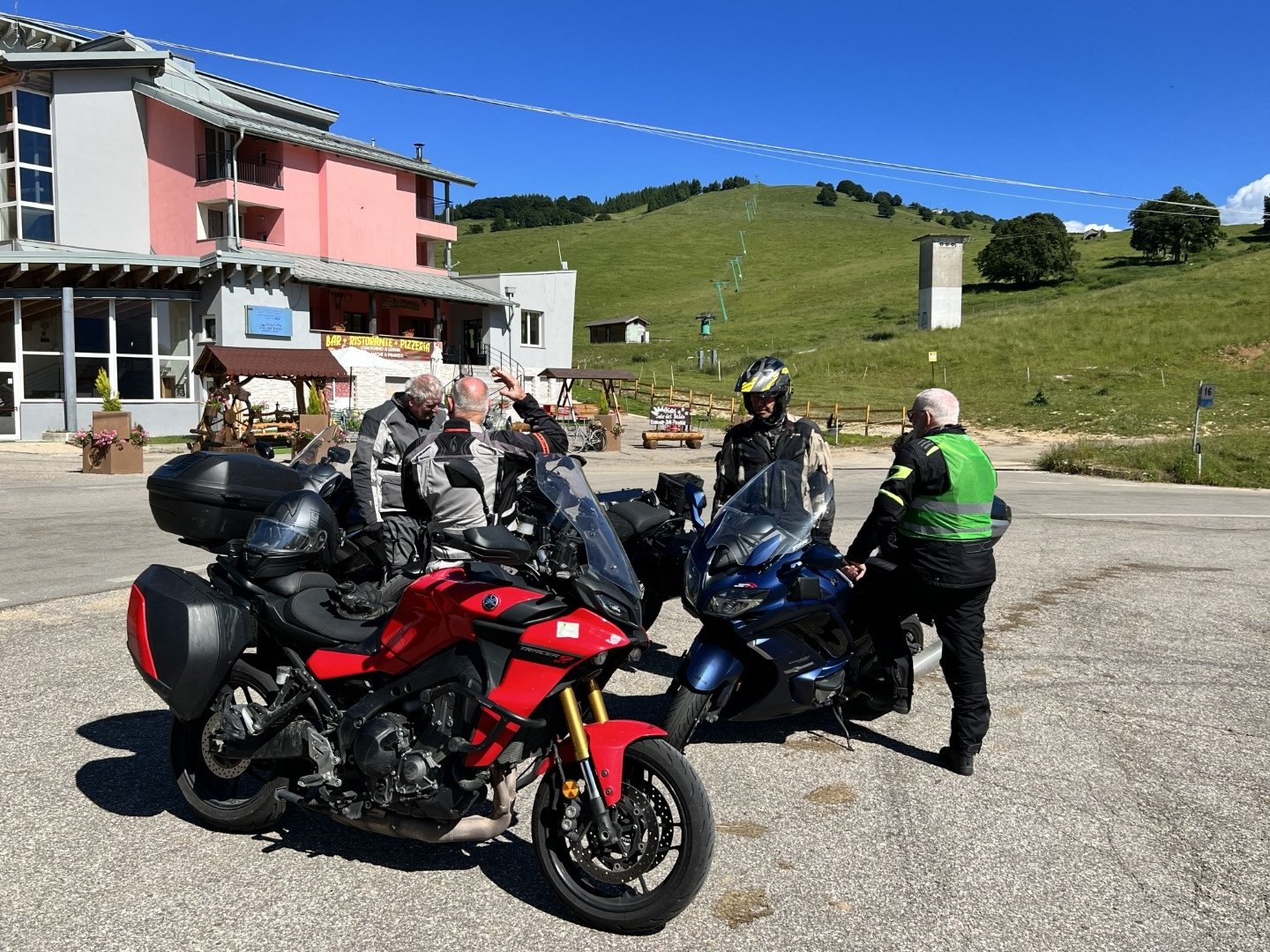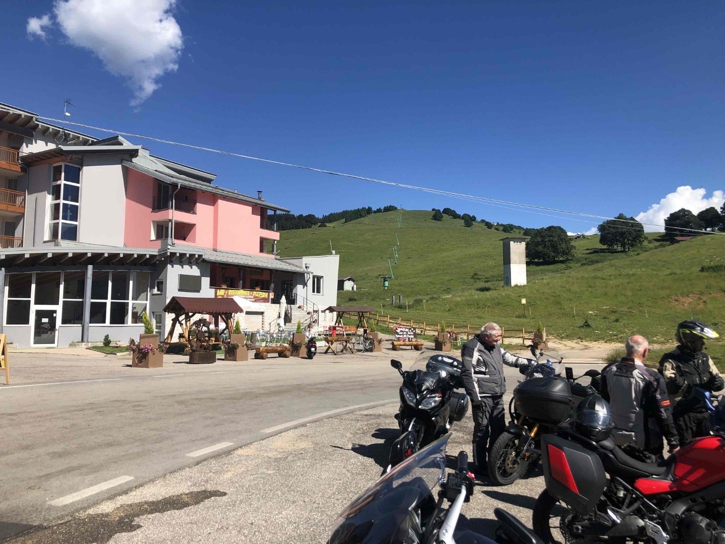 Rundtour im Gebirge östlich vom Gardasee via Rovereto – Recoaro Terme – Tregnago – Bentino Belluno – Monte Baldo – Garniga Terme – Passo Bondone. Es war eine sehr anspruchsvolle mit vielen Kurven und Höhenbewältigungen, mit ca. 310km lange Tagestour. Den ganzen Tag war es richtig sonnig und warm, die Gegend bot einmalige Ansichten, die Strecke war auch für italienische Töfffahrer bekannt und beliebt, welche zum Teil mit hoher Geschwindigkeit und Kurvenschneiden uns entgegen kamen. Alle Teilnehmer kehrten ca. um 18.00 Uhr müde und glücklich zum Hotel zurück.