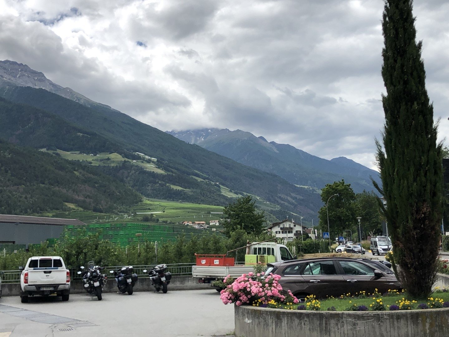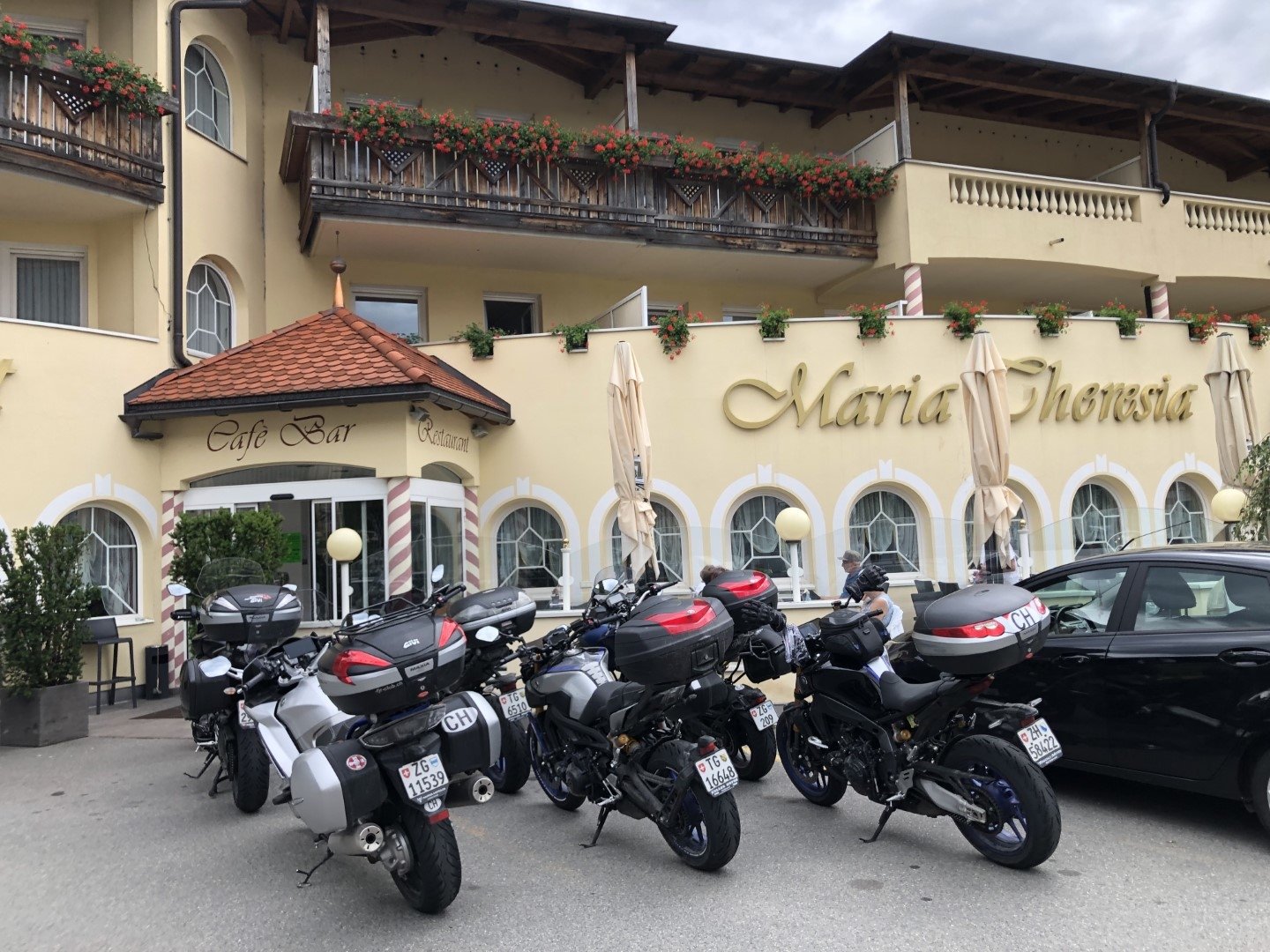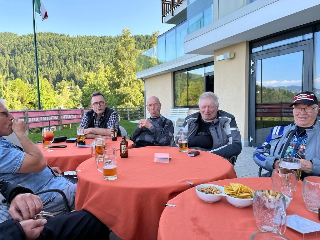 Am Start war das Wetter noch nicht auf der sonnigen Seite. Auf der Anfahrt über den Flüela bis Susch musste bei Regen und nasser Fahrbahn vorsichtig gefahren werden. Von da an durfte auf trockener Strasse und mit zunehmender Sonne gefahren werden. In Schlanders war für alle Gruppen ein Platz im Hotel Maria Theresia für das Mittagessen reserviert. Alle trafen rechtzeitig zum Duschen, Apéro und Nachtessen im Hotel Monte Bondone ein. Das Hotel liegt oberhalb Trient auf einer Höhe von 1300m mit einer herrlichen Aussicht auf das Trentino. Gesamtstrecke ca. 310km.
