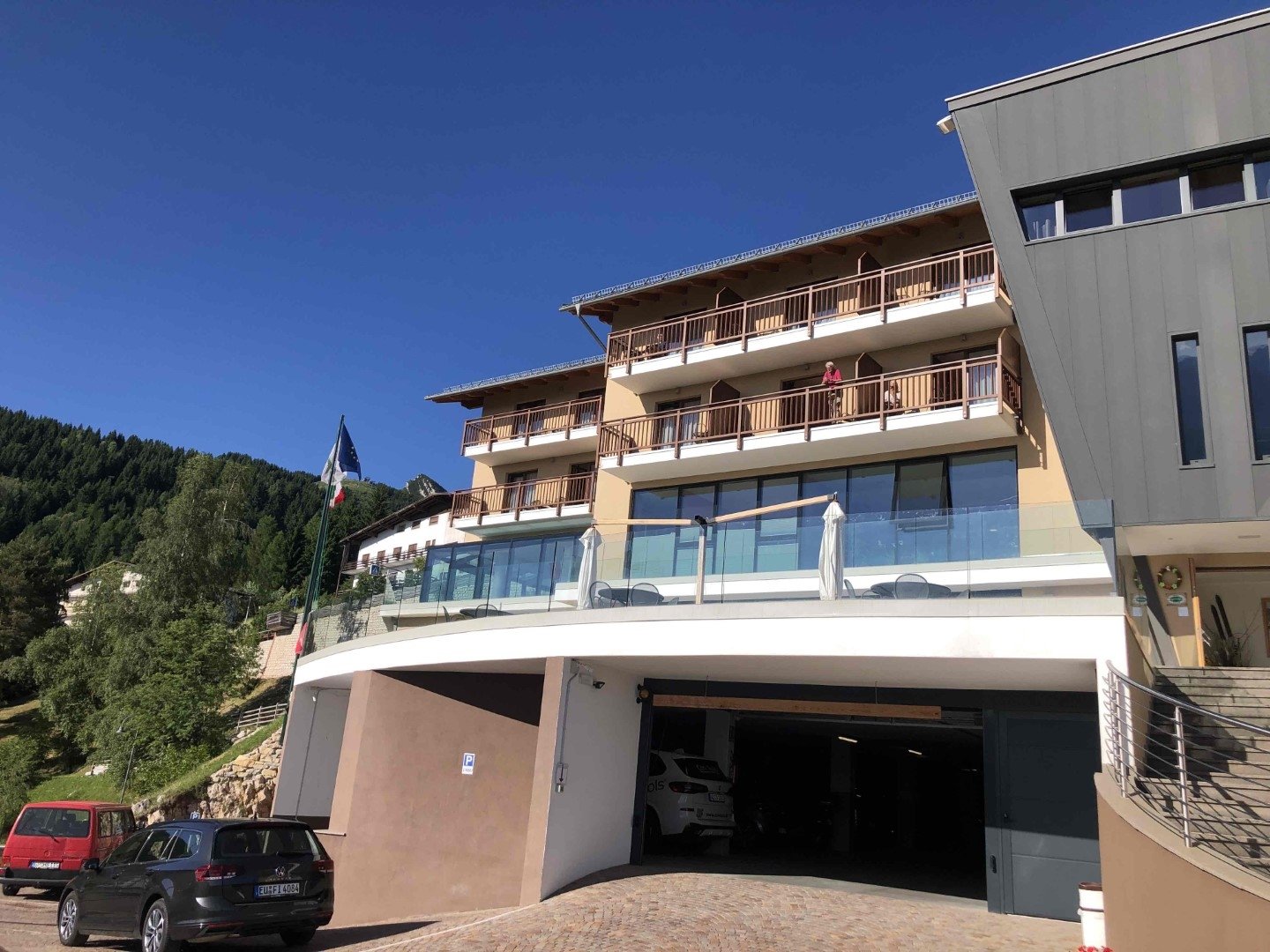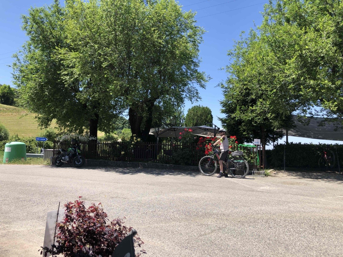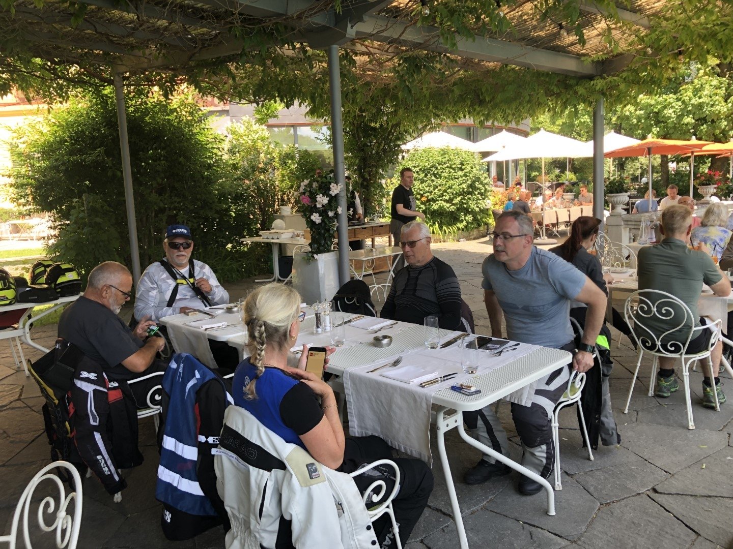Am Start war das Wetter noch nicht auf der sonnigen Seite. Auf der Anfahrt über den Flüela bis Susch musste bei Regen und nasser Fahrbahn vorsichtig gefahren werden. Von da an durfte auf trockener Strasse und mit zunehmender Sonne gefahren werden. In Schlanders war für alle Gruppen ein Platz im Hotel Maria Theresia für das Mittagessen reserviert. Alle trafen rechtzeitig zum Duschen, Apéro und Nachtessen im Hotel Monte Bondone ein. Das Hotel liegt oberhalb Trient auf einer Höhe von 1300m mit einer herrlichen Aussicht auf das Trentino. Gesamtstrecke ca. 310km.