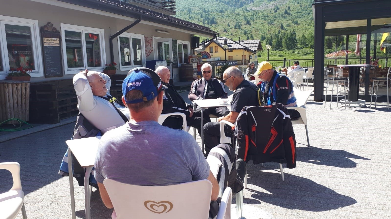 Bei sonnigem Wetter konnte zur Rückfahrt gestartet werden. Die Strecke führte über den Passo del Tonale – Mendola – Tirano – Bernina – Julier – Lenzerheide nach Wangs. Die zügige Strecke mit ca. 320km und vielen schönen Sehenswürdigkeiten konnte innerhalt nützlicher Zeit bewältigt werden. In Wangs gönnten sich zum Abschluss alle noch einen Glacé Coup.