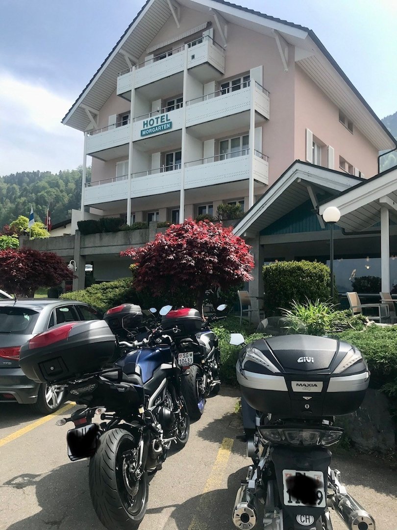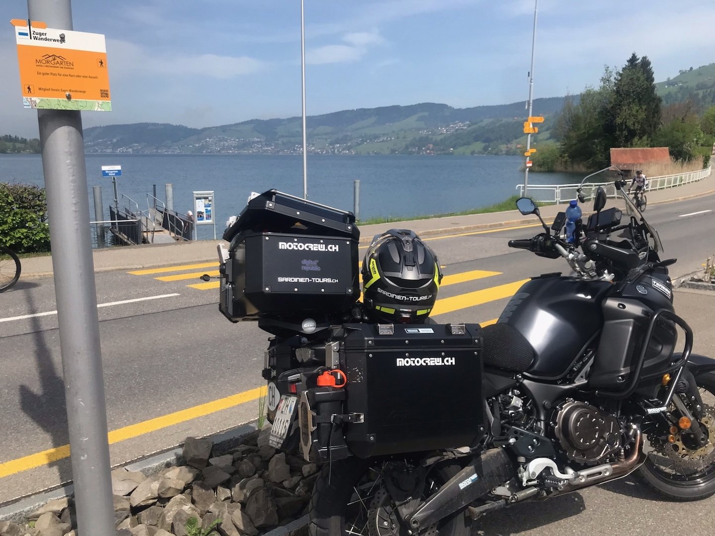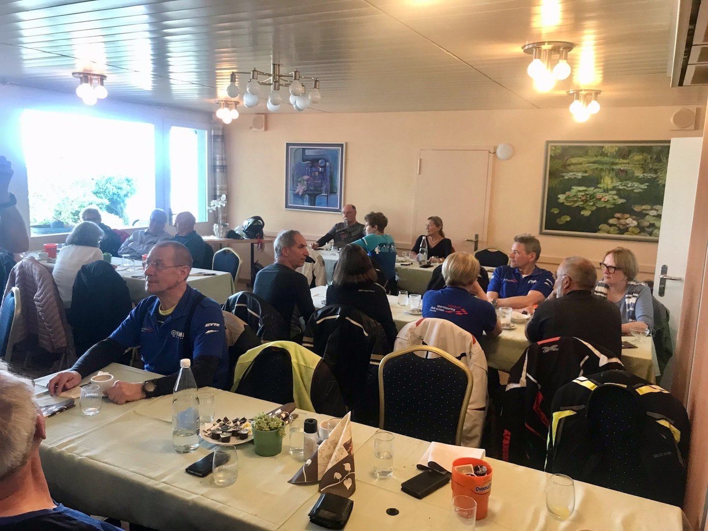 Grâce au temps exceptionnel, beaucoup sont venus en moto. Un excellent repas a permis de mener de bonnes discussions et de se détendre l'esprit avec une vue de rêve sur le lac d'Aegeri.