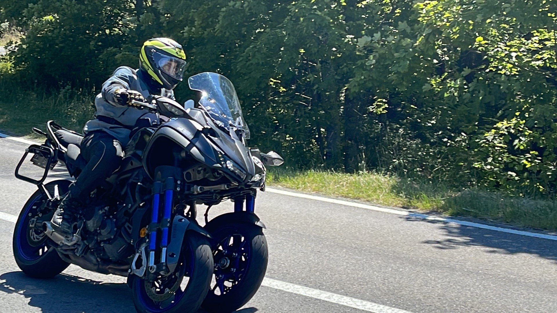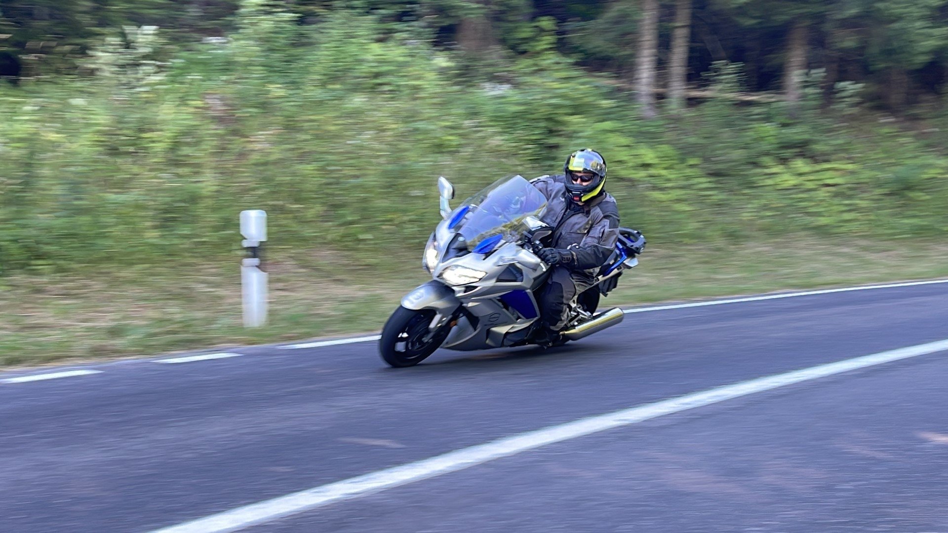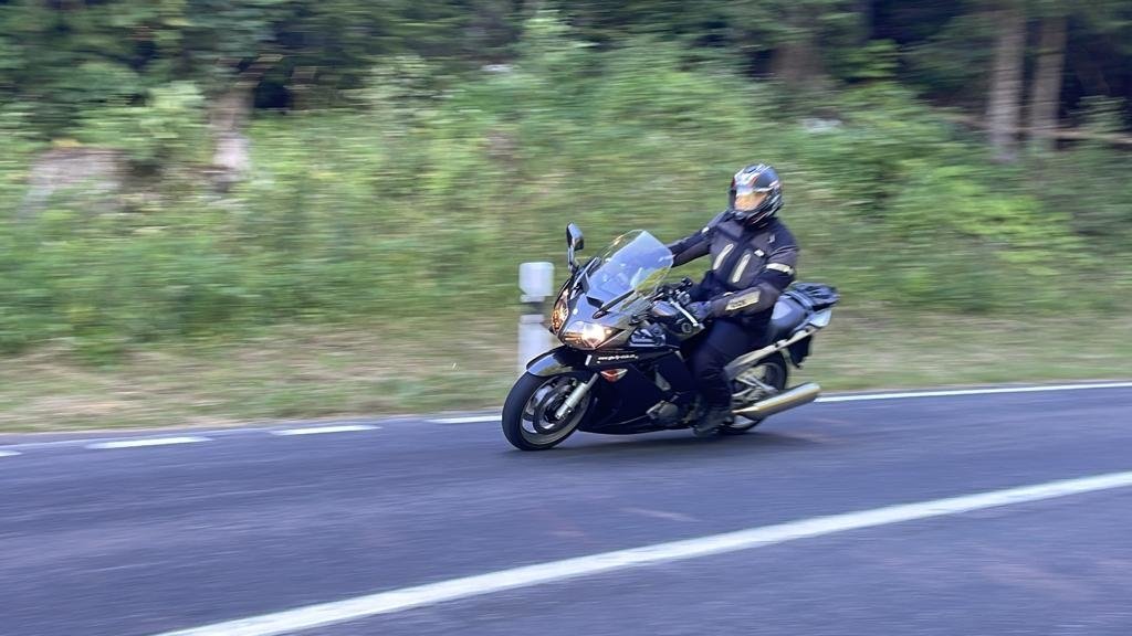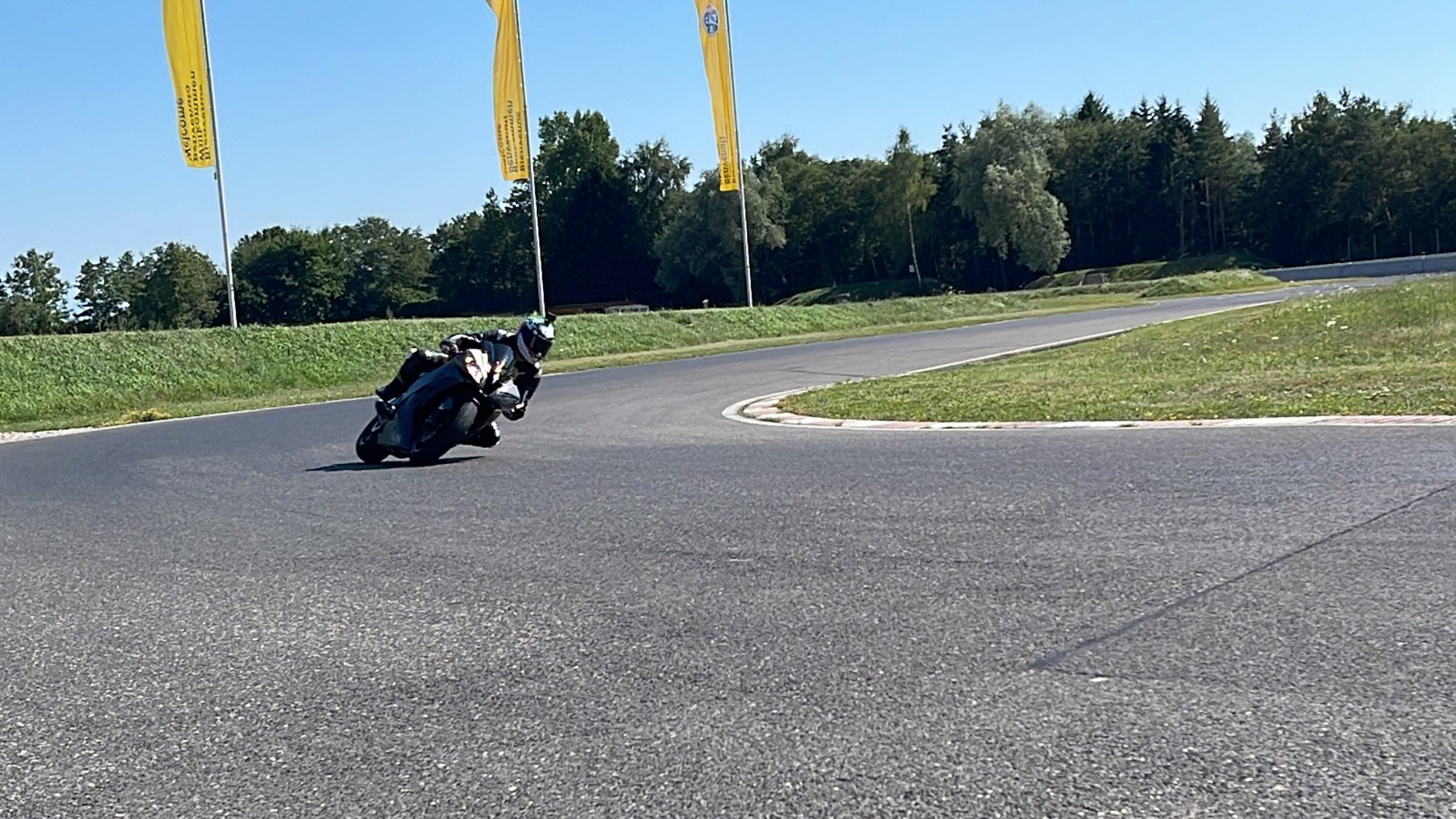 La position assise et le hanging-off, c'était la spécialité de Rolf Biland sur le circuit.