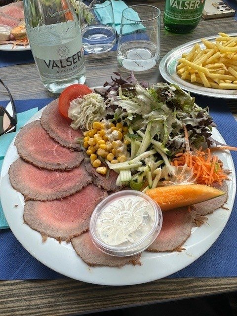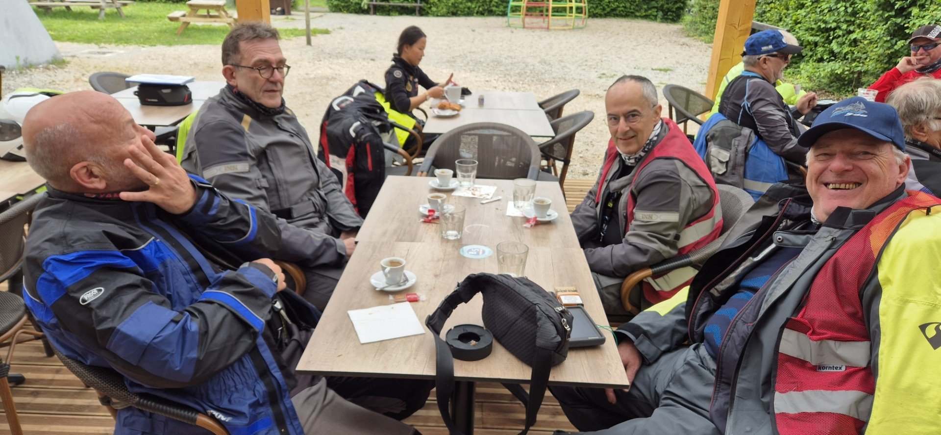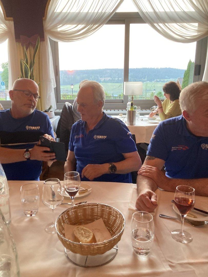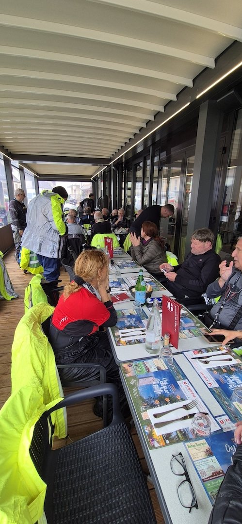 Lundi matin, le soleil brillait enfin pleinement, même si l’air était encore un peu frais au départ. À 8h30, tout le monde était prêt pour la dernière étape : pause-café à Gigot, puis le traditionnel déjeuner de clôture au Restaurant du Port à Erlach. Le roastbeef, fidèle à sa réputation, a ravi tout le monde une fois de plus.