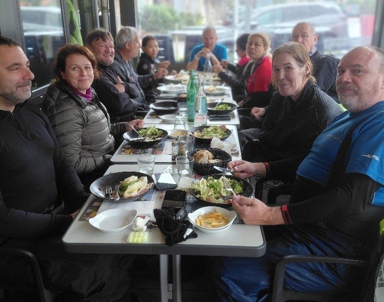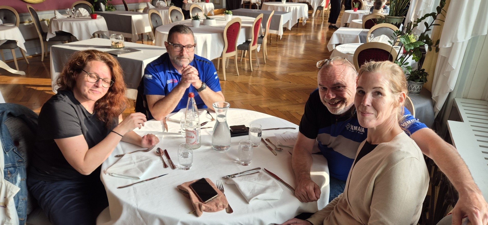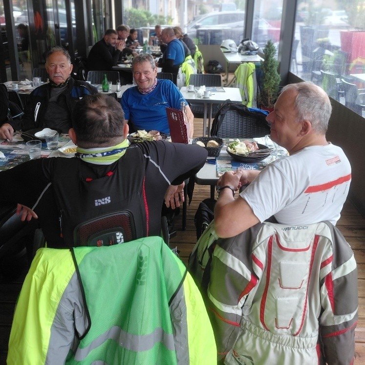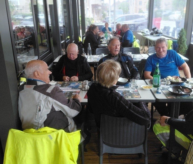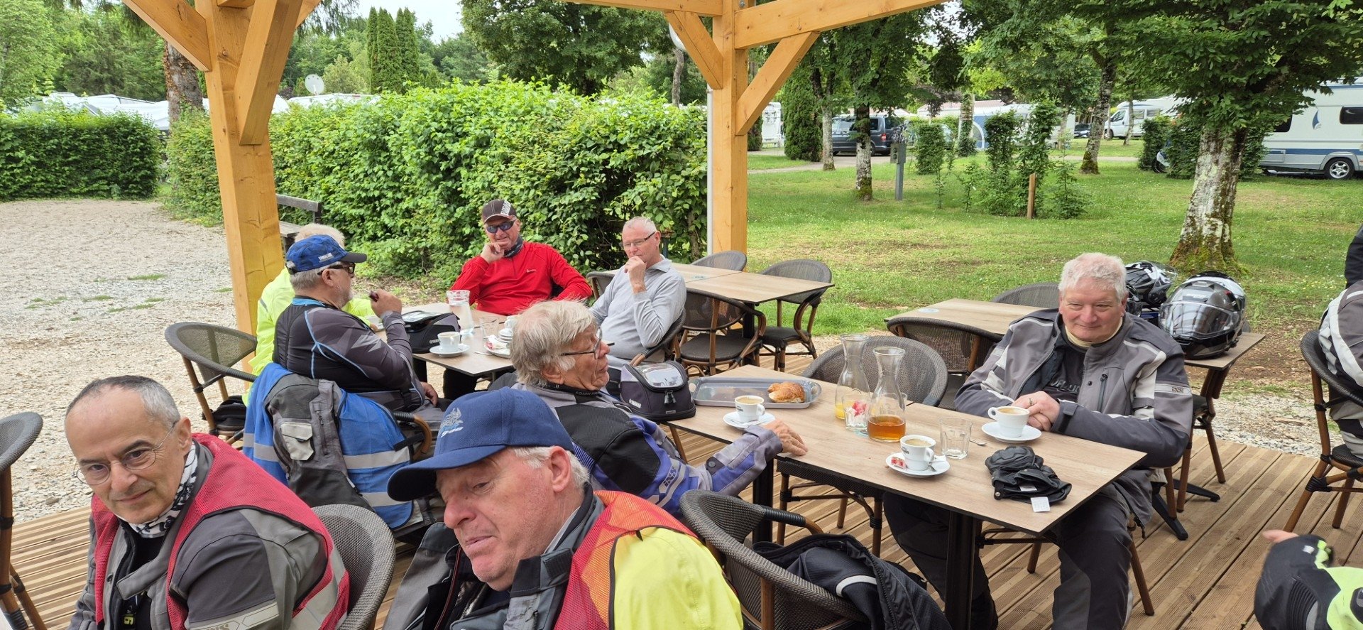Lundi matin, le soleil brillait enfin pleinement, même si l’air était encore un peu frais au départ. À 8h30, tout le monde était prêt pour la dernière étape : pause-café à Gigot, puis le traditionnel déjeuner de clôture au Restaurant du Port à Erlach. Le roastbeef, fidèle à sa réputation, a ravi tout le monde une fois de plus.